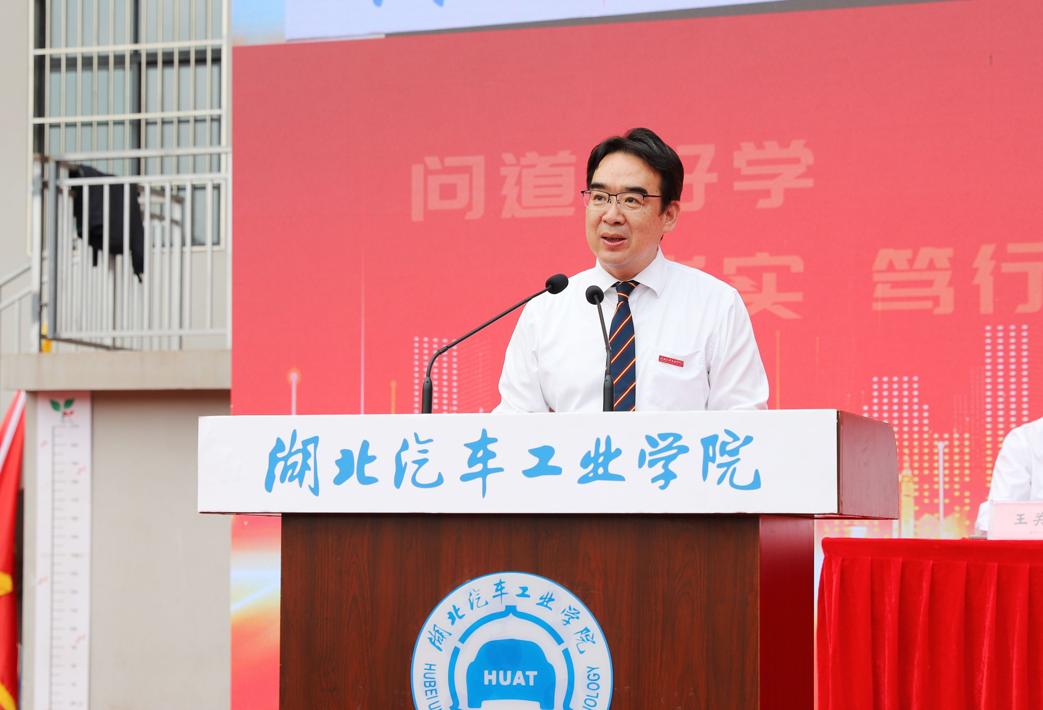 教师代表机器人与自动化学院教授罗敏、校友代表湖北万润新能源科技股份有限公司党委书记罗超华、新生代表汽车智能制造学院孔浩宇分别上台发言。
