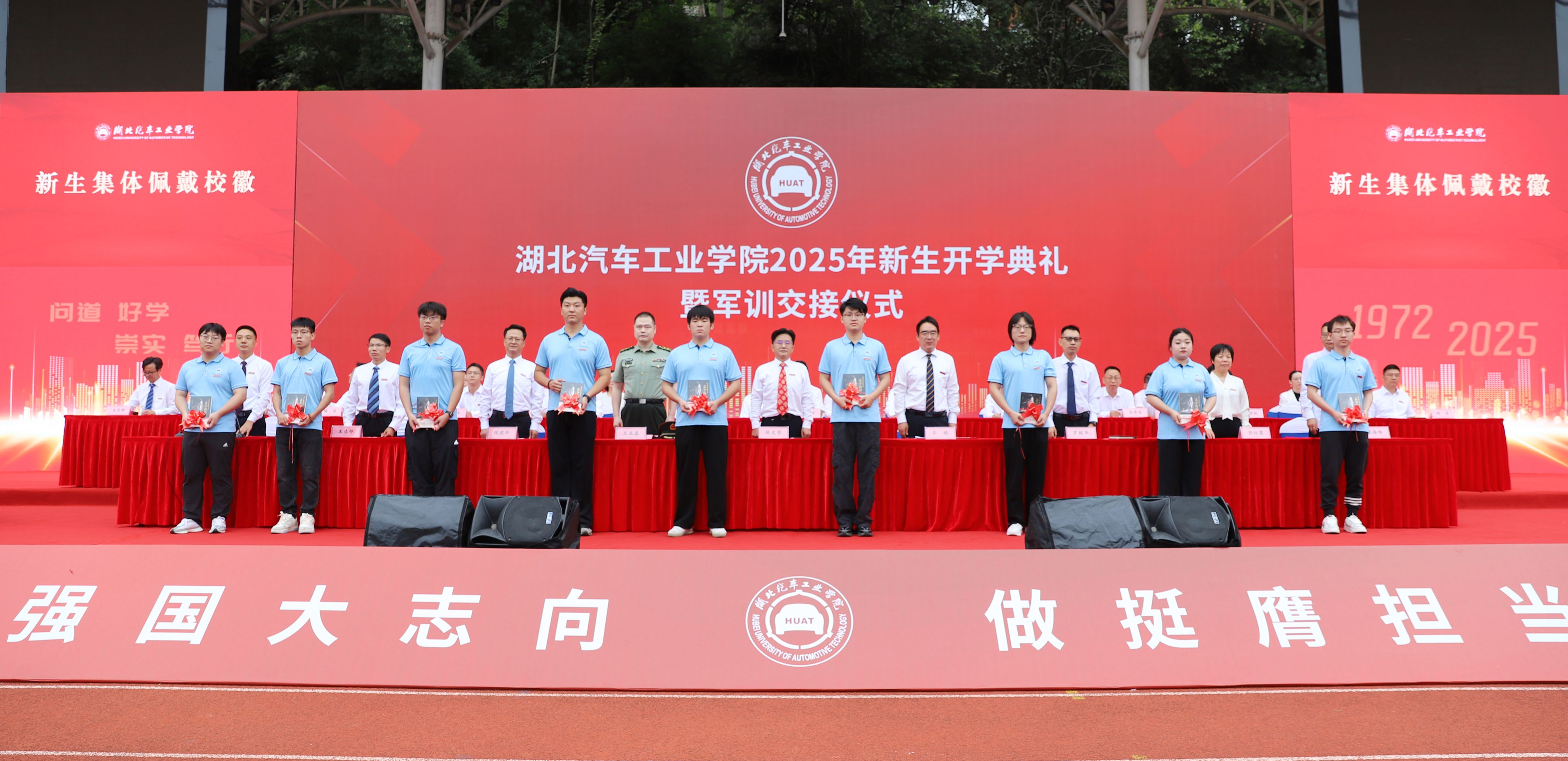 9月16日清晨,2025级新生开学典礼暨军训交接仪式在南校区田径场举行,7000余名新生共上“大学第一课”,王晓以“追求卓越 向车而行”为题,为全体新生讲授了精彩的一课。全体在家校领导出席开学典礼,校友代表罗超华,军训承训部队、十堰军分区中校副部长王玉磊应邀参加。开学典礼由党委常委、党政办主任王文山主持。